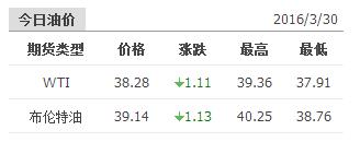 2016年3月30日国际原油价格表