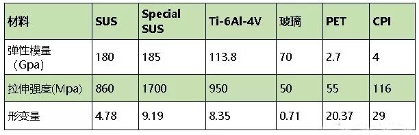 目前的屏幕基底材料以玻璃为主,但是玻璃不能弯曲折叠,因此塑料的特性成为折叠屏眼下最适宜的基底材料。荧幕基底换成薄膜后不仅基底能够折叠,还可提高屏幕的抗摔性,同时屏幕更加轻薄。以下为列举的几种主要基底材料性能对比;